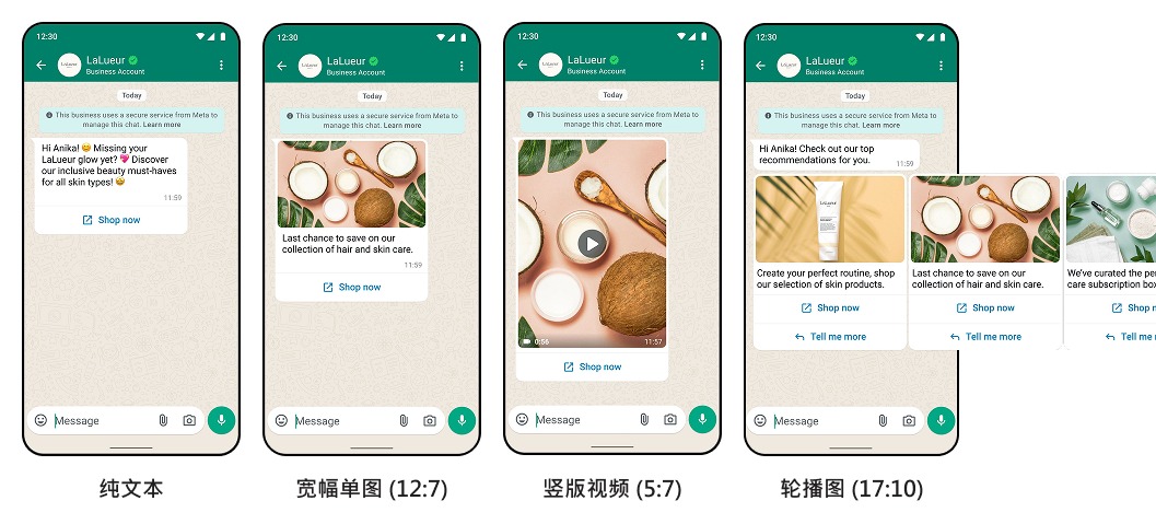 利用WhatsApp丰富的原生消息格式,可以极大降低互动摩擦,引导自然对话旅程。